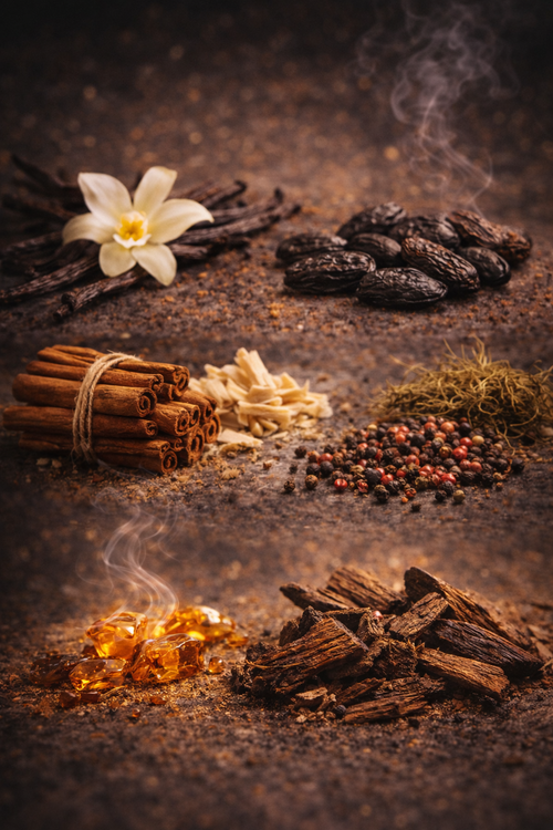 عطری است بسیار شیک با رایحه ای بسیار متعادل از چوبها که شروعی نیمه شیرین از ترکیب رایحه عود و چوب رزوود دارد که وجود شیرینی ملایم کهربا بخوبی تلخی چوبها را کنترل میکند. با گذر زمان کهربا قوی تر شده و شیرینی و گرمای بیشتری را ایجاد میکند که باعث جذابتر شدن عطر میگردد و رایحه چوبهای رز وود و عود نیز کماکان حضور دارد تا حس شکیل و با کیفیت چوبی خود را به معرض نمایش بگذارند.