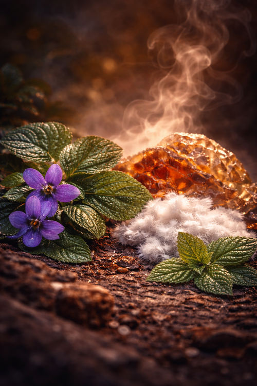 رایحه ابتدایی عطر با بوی سبز، خنک و گلدار بنفشه آغاز می شود که بدلیل حضور نعنای هندی حسی نمناک و مرطوب نیز به همراه دارد. با گذر زمان حس سبز و گیاهی و مرطوب رفته رفته ملایم و ملایم تر شده و جای خود را به رایحه نیمه شیرین مشک می دهند. رایحه میانی و پایه عطر رایحه ای نیمه شیرین و کمی گرم از مشک می باشد که حس گیاهی و مرطوب ضعیفی در پس زمینه به همراه دارد.