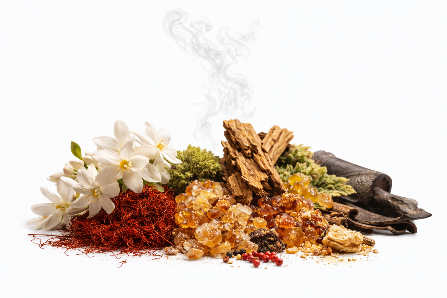 در آغاز، رایحهی لطیف گلهای سفید در کنار زعفران، فضایی شفاف، گرم و اشرافی ایجاد میکند. در قلب عطر، ترکیبی از روایح ادویهای و چوبی، عمق و پیچیدگی جذابی به آن میبخشد. در پایان، عنبر گرم، خزه و روایح زمینی، ماندگاری بالا و حس آرامشبخشی را روی پوست باقی میگذارند.