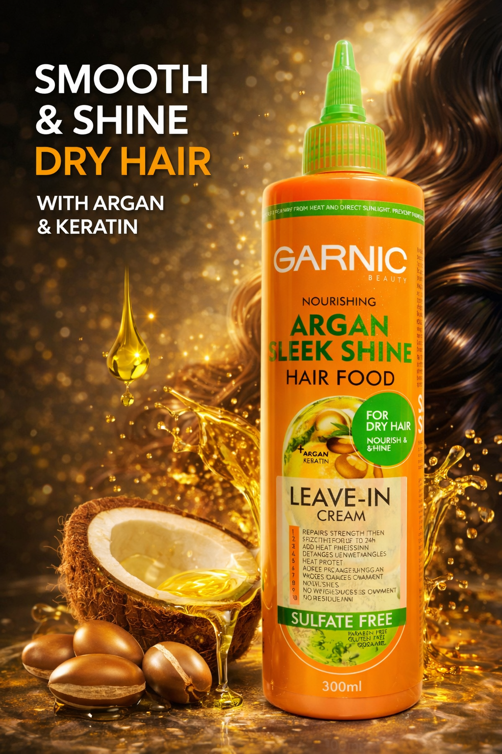 کرم مو بدون آبکشی گارنیک مدل Argan Sleek Shine مناسب موهای خشک – 300 میلیلیتر